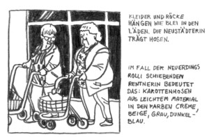 Weg vom komischen Streifen Stimmengemurmel erfüllt den in kitschiges Rosa gehaltenen Raum, untermahlt vom leisen Klappern des Geschirrs. Ab und an bringt ein beflissener Kellner ein neues Tässchen Kaffee an den Tisch. Langsam wird es spät: Den ersten weintrunkenen Gästen sinkt der Kopf auf den Tisch, während die Bedienungen verstohlen zu gähnen beginnen. Immer mechanischer und drängender werden die Geräusche – was Stunden zuvor noch plüschige Behaglichkeit war, bekommt plötzlich klaustrophobische Züge. Diese typische Wiener Kaffeehausszene hat der Berliner Zeichner Kai Pfeiffer eingefangen: In rascher Folge wechseln in seiner mit O-Tönen unterlegten Projektion Stimmungsbilder und flüchtige Eindrücke ab. Der Mitherausgeber des Magazins „Plaque" ist einer der Pioniere der Comic-Reportage im deutschen Sprachraum und zugleich Vertreter einer neuen Form des Comic Genres: eben der Reportage. Bereits seit einigen Jahren lässt sich in den Hochburgen Belgien, Frankreich, Nordamerika und Kanada eine Tendenz zu biografischen und gesellschaftskritischen Themen beobachten. In den Räumen des ehemaligen Mannheimer Gesundheitsamtes präsentiert nun das Büro für Kunst zetraum_ex!t eine hochkarätig besetzte Ausstellung mit Zeichnungen der Künstler Pierre Thomé, Oliver Grajewski, Noyau, Kai Pfeiffer und der Künstlerin Ulli Lust: weder Superhelden noch Micky Mäuse, sondern eine spannende Mischung aus Skizzen, Reisetagebüchern, Momentaufnahmen und (teils sehr persönlichen) Reflexionen. Klassisches Beispiel ist die Reihe „Wer bleibt – Comicreportage aus Halle-Neustadt" von Ulli Lust. Die Zeichnungen der Berlinerin beruhen auf ausführlichen journalistischen Recherchen, die auch ganz alltägliche Beobachtungen einschließen. „Das uramerikanischste Beinkleid von allen, die Jeans, hat Neustadt ganz und gar erobert. Die Röhrenjeans, die gerade in Berlin und London so en vogue ist, tragen hier die 30 – bis 50.Jährigen gerne mit Jeansjacke, was immer ein wenig verwegen wirkt," schreibt sie zum Beispiel neben die Zeichnung eines Kinderwagen schiebenden Pärchens. Fast schon malerische Qualitäten haben dagegen die während einer Chinareise entstandenen Tuschearbeiten von Pierre Thomé. Mit leichtem kalligraphischen Strich skizziert der Leiter des Studienbereichs Illustration an der Luzerner Hochschule für Gestaltung und Kunst Eindrücke wie typische Straßenszenen. Im Zeitalter moderner Medientechnologie verlassen die Zeichnungen auch schon mal das konventionelle weiße Blatt. „Die Natur ist nicht schlecht, nur voll", titelte beispielsweise Oliver Grajewski seine wandfüllenden Projektionen, in denen er die Mythen der Alltagskultur und Werbung aufgreift: Seine inzwischen über 100 Sequenzen umfassende und über mehrere Jahre hinweg entstandenen Serie ist bevölkert von seltsamen Monstern, „Kackmännchen", Castorgegnern, stürzenden Pferden und Schlagersängern. Der Absolvent der Berliner Hochschule für Bildende Künste ist Herausgeber der Heftserie „Tigerboy" du veröffentlicht unter anderem in der Süddeutschen Zeitung, der Berliner Zeitung und der taz. „... Ich habe bellende Hunde gezeichnet und sobald sie genug detailreich waren, fingen sie an meine Finger zu beissen. Wahrscheinlich zu deutlich für Sigmund. Küsschen Yves." Dieser Postkartentext nebst einem locker skizzierten Sigmund Freud stammt aus der Feder des Züricher Zeichners Yves Noyau, dessen Reiseerzählungen unter anderem in Wien, Tolyo, Südafrika und Istanbul entstanden. Seine dokumentarische Illustration belegt einmal mehr, wie weit sich die Szene von den klassischen „komischen Streifen" entfernt hat – und das alles andere als zu ihrem Nachteil. Scala 01. 2007