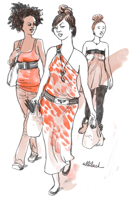 | Fashionvictim / Modeopfer 014 Berlin 2010 Today women can wear their belt anywhere on their body, from Their armpits to their hips. (it is long known that the below ass-cheek area has been for teenage men only) Heutzutage kann Frau den Gürtel an jeder Stelle des Leibes zwischen Achselhöhle und Hüfte tragen.