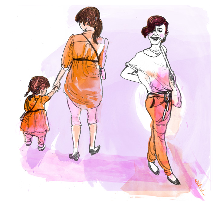 Wem stehts besser? Mutter oder Tochter? Die Kleine punktet mit den raffiniert wattierten Hosen (von Bernhard Willhelm?).