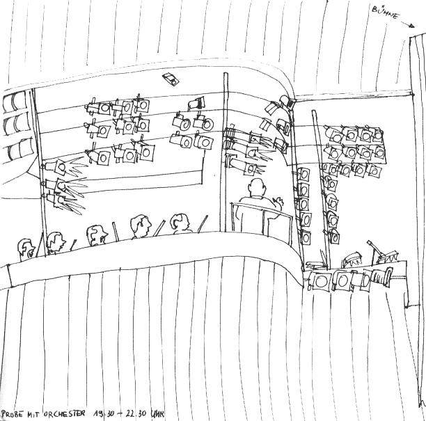 „Stress ist eigentlich nur von Bild 1 bis 9, nachher denkst Du es ist vorbei, aber dann kommen die ganzen Wechsel, Triangel und Tam Tam und und , plötzlich hast Du lauter Schlegel in der Hand. Bei der Chinesischen Nummer, die ist so chaotisch, ich denke immer, ich habe den Einsatz verpaßt. Am Schluß bin ich immer völlig durcheinander und die einzige Kontrolle, daß alles richtig war, ist, daß der Dirigent nicht böse schaut."