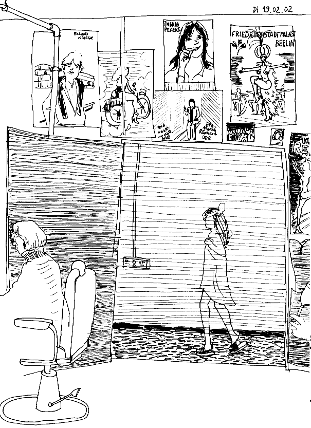 | Tänzerin: „war ich mit meinem Freund auf einer Party bei seinen ganzen Kunsthochschulkumpels. Hab ich mich ein wenig zurecht gemacht so mit hübschen Schühchen und einem kleinen Schwarzen. Da lief so eine Mucke, son Drum `n Bass, son Elektrozeug, das kann ich eh schon nicht ab ... und so stand ich da alle anderen Jungs und Mädchen in weiten Hosen und Turnschuhen, alle einen auf cool gemacht und fingen an zur elektronischen Musik zu tanzen. Mein Freund hat mich dauernd angestoßen so nach dem Motto „Na, is das nicht toll hier?" Ich fand das alles echt Scheiße, hab zwischen denen sicher lächerlich ausgesehen, und tanzen wollte ich da eh nicht. „Na hättste mal angefangen so richtig zu tanzen, da hätten die Augen gemacht!" „Die hätten mich blöd angeschaut, so wärs gewesen!" |